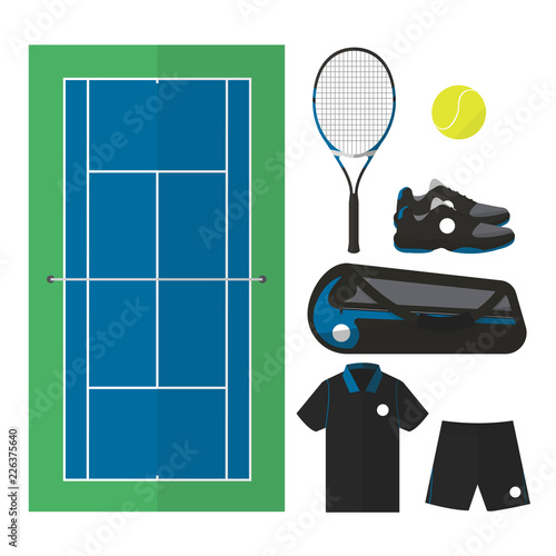 Tennis Things Top View Of Court And Male Equipments Like Racket Ball Shoes And Others Simple Flat Design Style Vector Buy This Stock Vector And Explore Similar Vectors At Adobe Stock