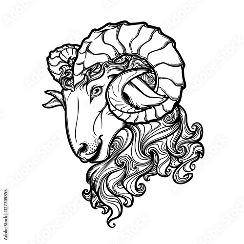 Aries Zodiac Sign Ram Head Ink Black White Drawing Stock Photo C Alexblacksea