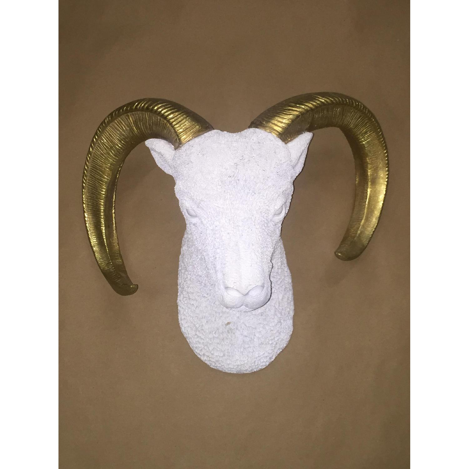 Cb2 White Sculpted Ram Head With Gold Horns Aptdeco