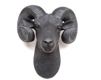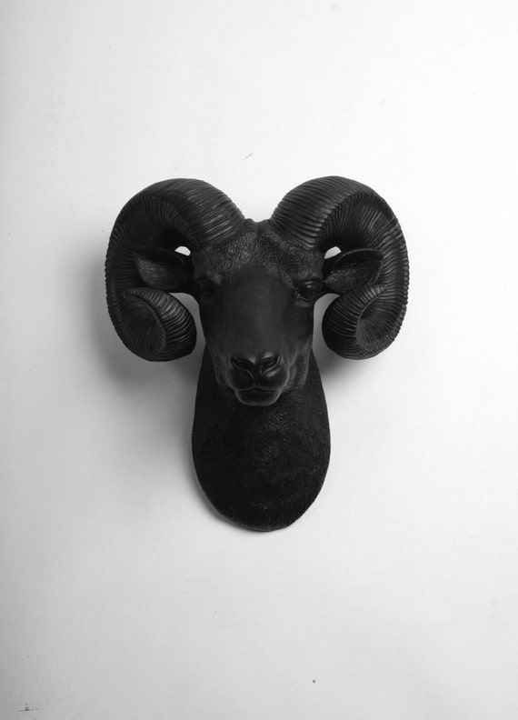 Xl Black Ram Head Wall Mount W Black Horns The Xl Darby Etsy