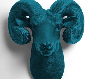 Amazon Com Near And Deer Aqua Blue Ram Head Wall Mount Faux Bighorn Sheep Wall Hanging Aqua Blue Faux Taxidermy Ram Sheep Head With Large Horns R6363 Home Kitchen