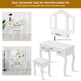 Costway 3 Piece White Living Room Set Tri Folding Vintage Vanity Makeup Dressing Table Set 5 Drawers Christmas Hwwh The Home Depot