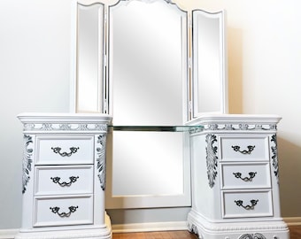 Custom Order For Jill White Antique Vanity Dressing Table With Triple Mirror Antique Vanity Decor Vanity