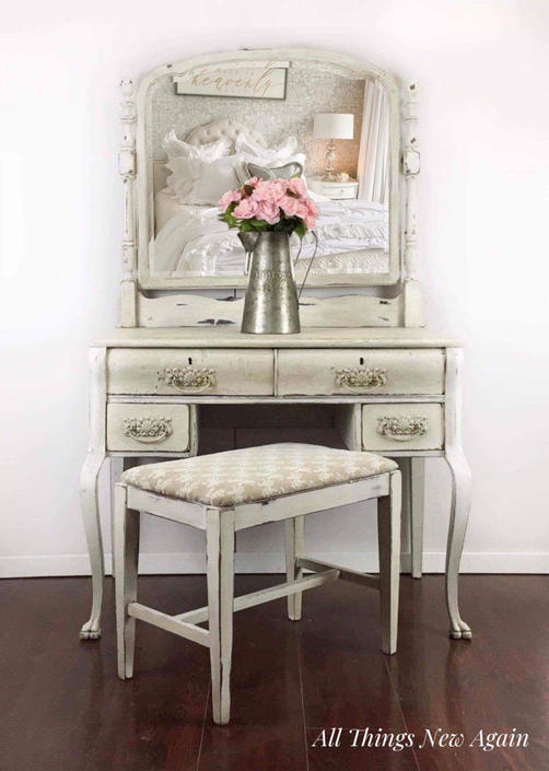 Antique White Vintage Vanity Desk Eclectic Home Living