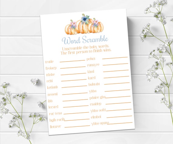 Little Pumpkin Baby Shower Word Scramble Game Printable Etsy Baby Shower Pumpkin Baby Shower Fall Baby Shower Wording