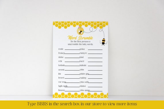 Bee Baby Shower Baby Word Scramble Bumble Bee Bumblebee Etsy