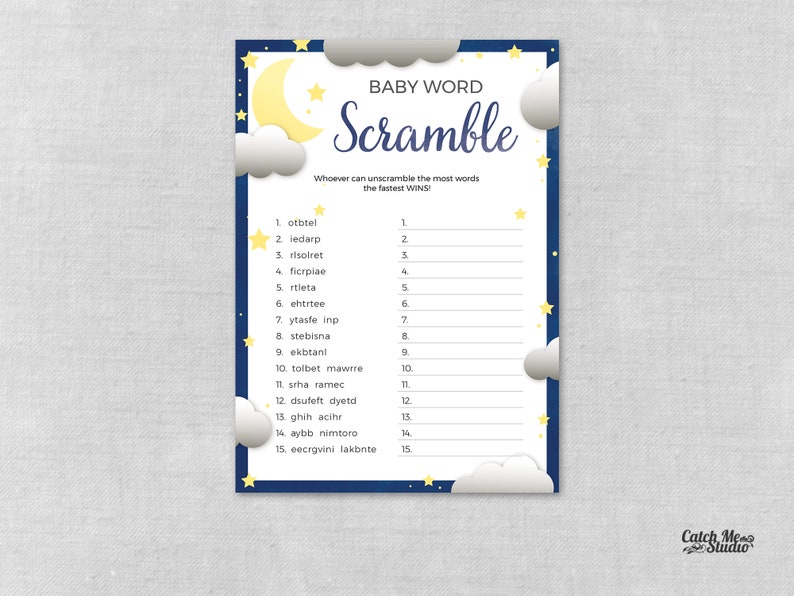 Twinkle Twinkle Little Star Word Scramble Baby Shower Game Etsy
