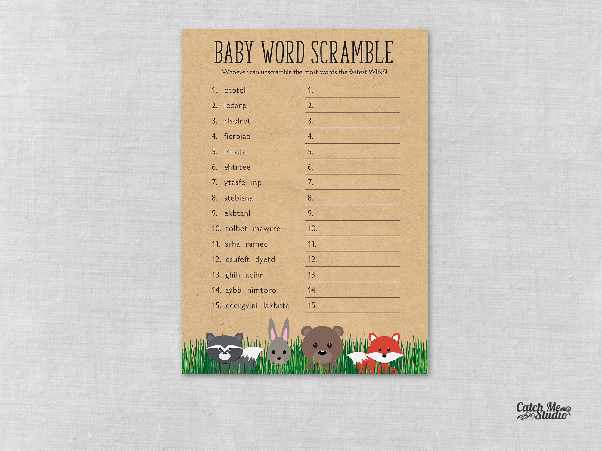 Woodland Baby Shower Word Scramble Game Cards Zazzle Com