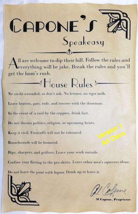 Al Capone S Speakeasy House Rules Poster 11 X 17 Bar Etsy