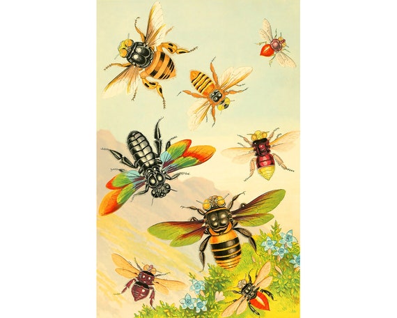 Bees Art Print Vintage Bee Art Bumblebee Honeybee Exotic Etsy