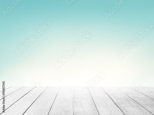 Soft Focus Clouds Sky Background With Old Wood Floor Blur Blue Pastel Sunlight Day Time Backdrop Abstract Blurred On Vacation Summer Ocean Beach Wooden Stage For Watching Nature Open View Heaven Wall