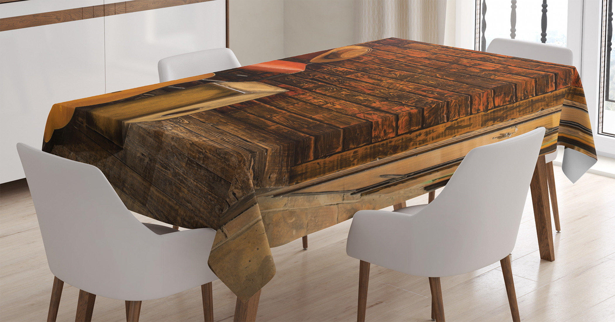 East Urban Home Ambesonne Music Tablecloth Music Instruments On Wooden Stage In Pub Beverage Cafe Counter Bar Rectangular Table Cover For Dining Room Kitchen Decor 60 X 84 Dark Orange Sand Brown Wayfair