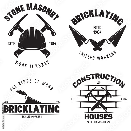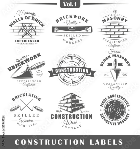 Set Of Vintage Construction And Bricklaying Labels Posters Stamps Banners And Design Elements Vector Illustration Buy This Stock Vector And Explore Similar Vectors At Adobe Stock Adobe Stock