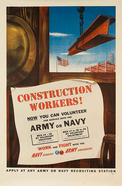 Construction Workers You Can Volunteer Army Navy Seabees Engineers Original Wwi Recruiting Poster Color David Pollack Vintage Posters