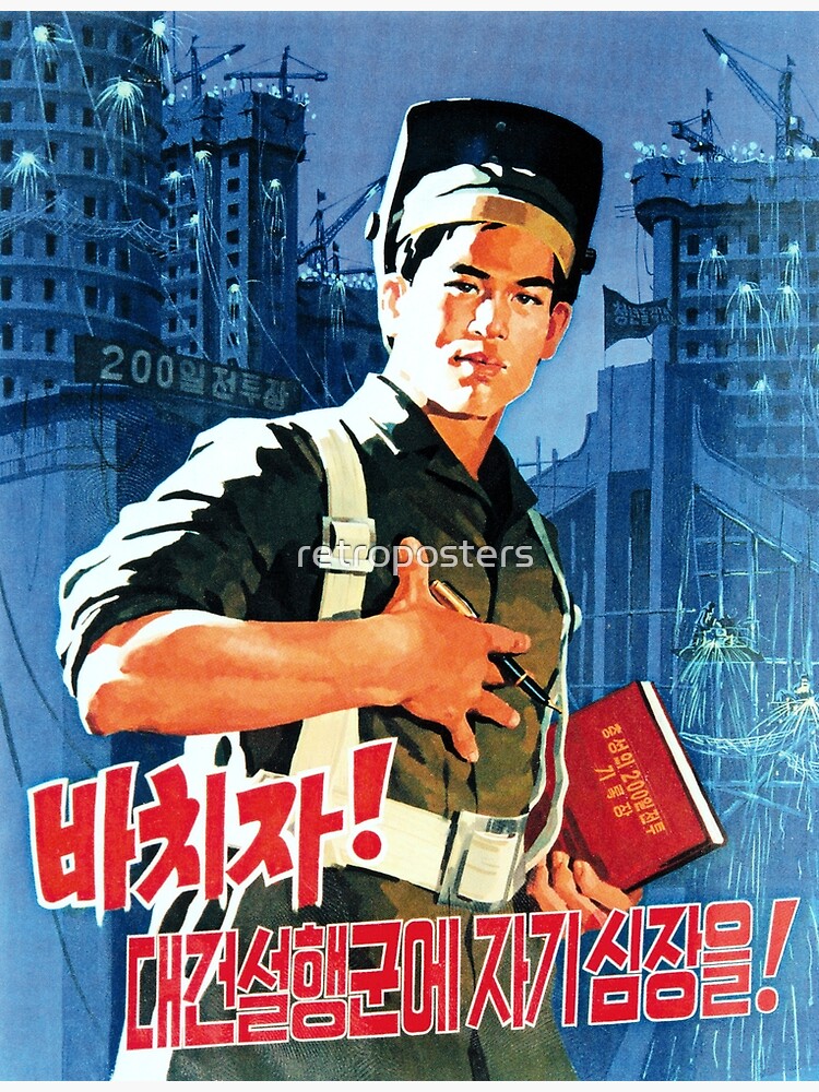 Wholeheartedly Devoted To The Great Construction March Vintage North Korea Propaganda Art Postcard By Retroposters Redbubble