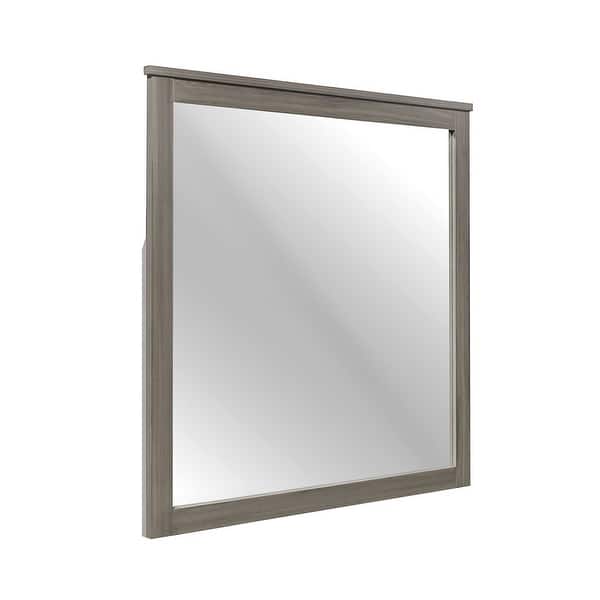 Square Wooden Frame Mirror With Grain Details Dark Gray And Silver Overstock