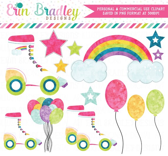 Watercolor Roller Skating Clipart Watercolor Clipart Roller Etsy