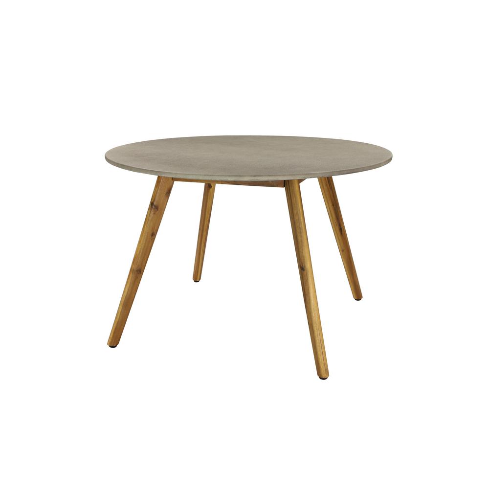 Litton Lane Round Gray Concrete Outdoor End Table With Wooden Mid Century Legs The Home Depot