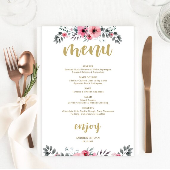 Professional Wedding Menu Template Watercolour Menu Etsy