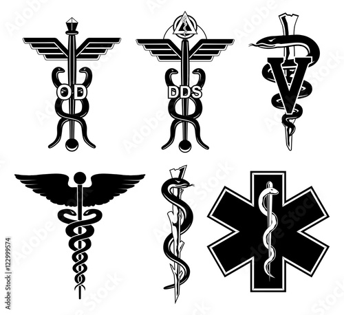 Medical Symbols Graphic Is An Illustration Of Six Medical Symbols Optometry Dentistry Veterinary Caduceus Rod Of Asclepius And The Star Of Life Buy This Stock Vector And Explore Similar Vectors At Adobe