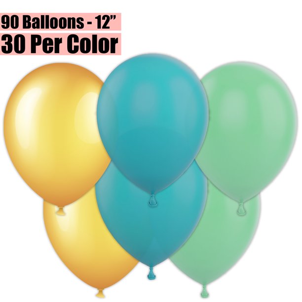 12 Inch Party Balloons 90 Count Metallic Gold Teal Aqua 30 Per Color Helium Quality Bulk Latex Balloons In 3 Assorted Colors For Birthdays Holidays Celebrations And More Walmart Com Walmart Com