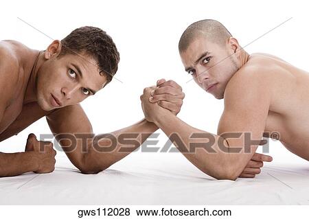 Portrait Of Two Young Men Arm Wrestling Stock Photo Gws1128 Fotosearch