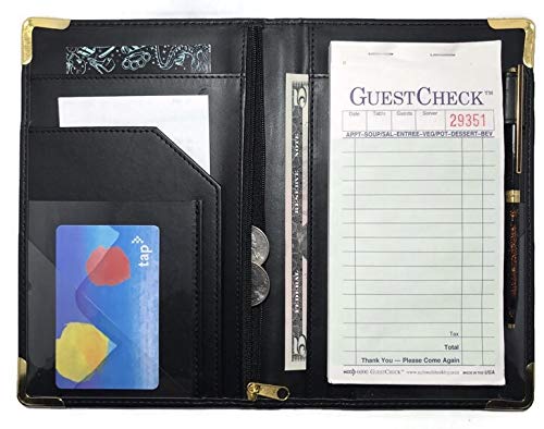 Amazon Com Waitress Server Book Wallet Restaurant Waiter Notepad Money Organizer Order Pad Holds Guest Check Books Zipper Pen Holder 10 Pockets Black With Gold Corners 5 X 8 Inch Industrial Scientific