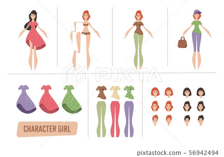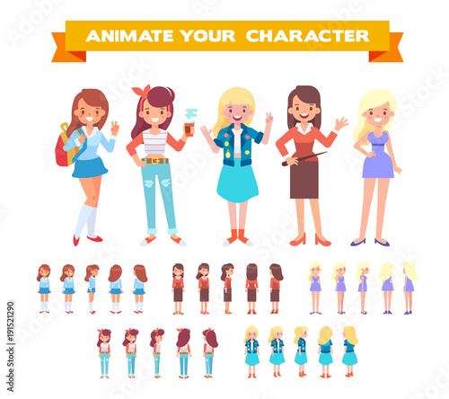 Cartoon Female Characters Animation Set Or Diy Kit Stock Illustration