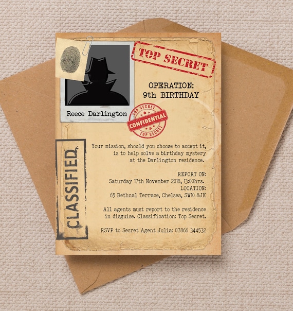 Top Secret Spy Party Invitation Etsy