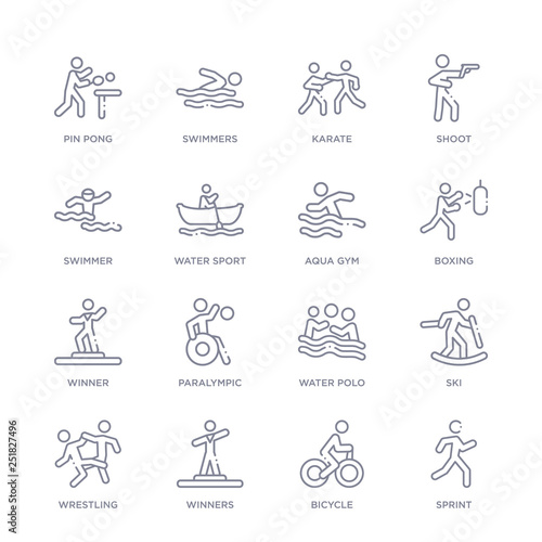 Set Of 16 Thin Linear Icons Such As Sprint Bicycle Winners Wrestling Ski Water Polo Paralympic From Olympic Games Collection On White Background Outline Sign Icons Or Symbols Buy This Stock