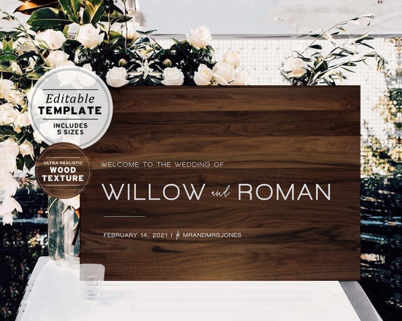 Dark Wood Look Wedding Welcome Sign Editable Template Etsy