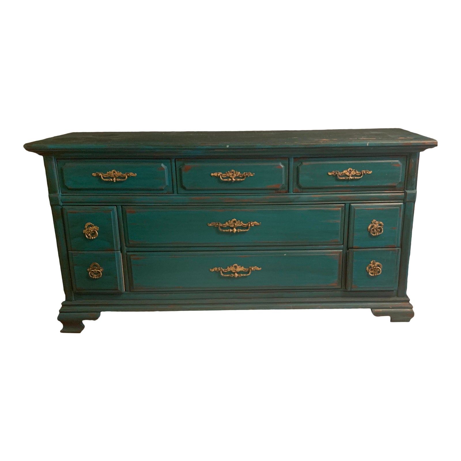 Turquoise Hand Painted Gold Leafed Hardware Distressed Dresser Chairish