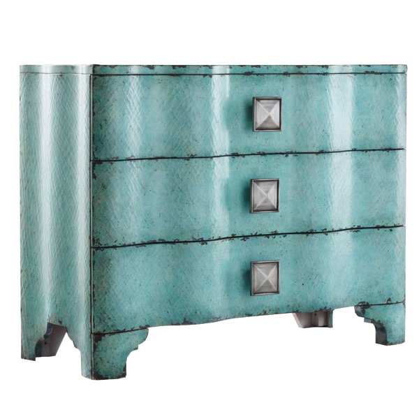 Ursula Distressed Turquoise Scroll 3 Drawer Chest