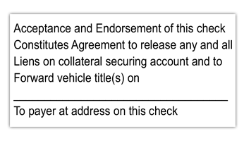 1st Checks Shiny 857 Acceptance Endorsement With Vehicle Title Stock Stamp Black Ink
