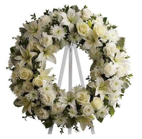 White Sympathy Wreath Avas Flowers