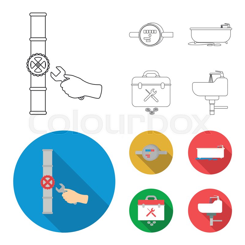 Water Meter Bath And Other Equipment Plumbing Set Collection Icons In Black Monochrome Outline Style Vector Symbol Stock Vector Illustration Of Logo Bath