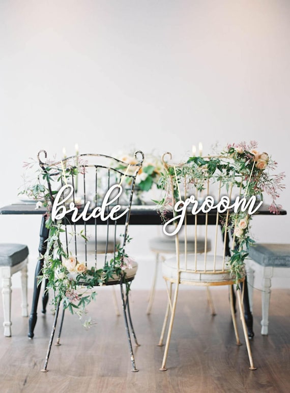 Bride Groom Chair Signs White Chair Signs Wedding Chair Etsy