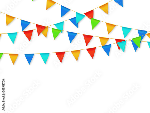 Pennant Flag Garland Birthday Party Fiesta Carnival Decoration Garlands With Color Flags 3d Vector Illustration Carnival Decoration Hanging On Rope Celebration Banner With Place Buy This Stock Vector And Explore Similar