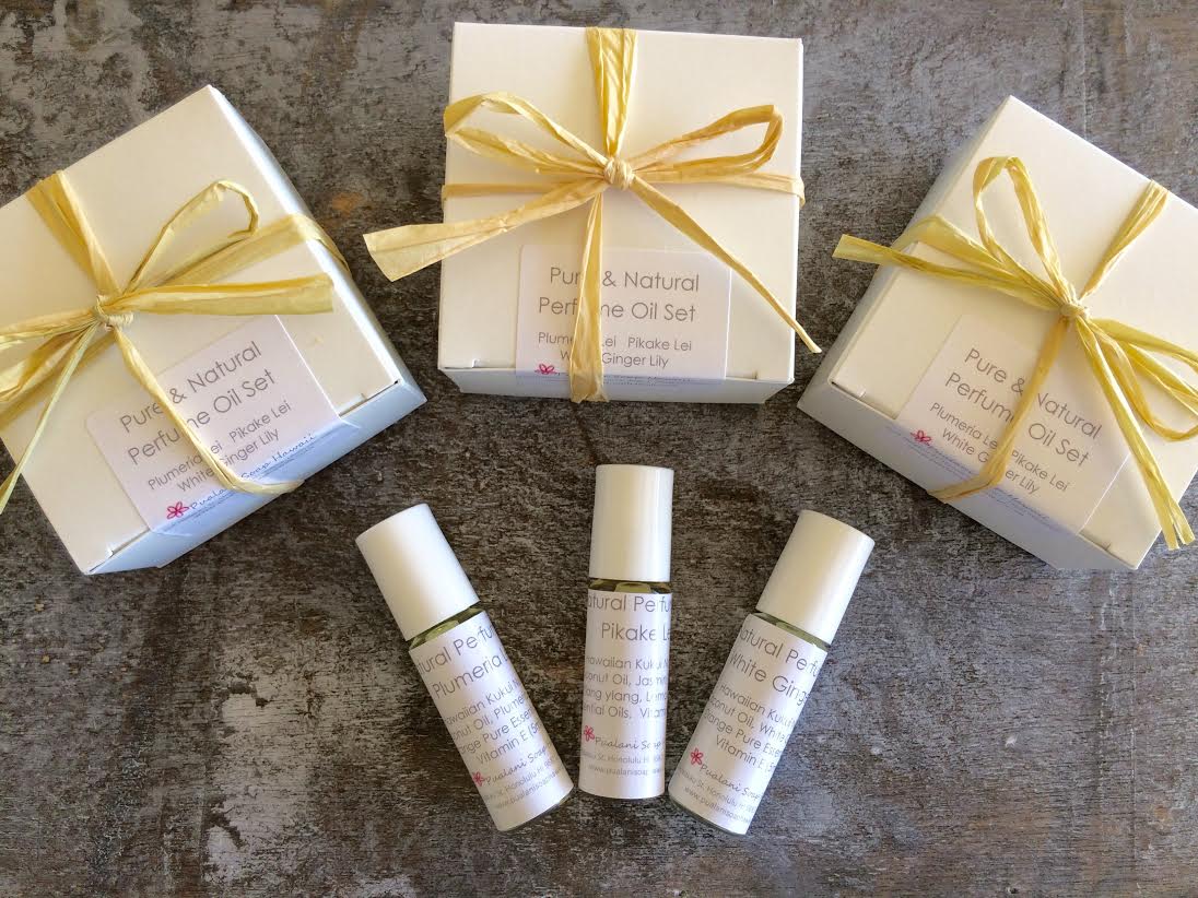 Hawaiian Flower Lei Natural Perfume Set Of 3 Pikake Plumeria White Ginger Lily 5ml Each Roll On Bottle Pualani Soap Hawaii