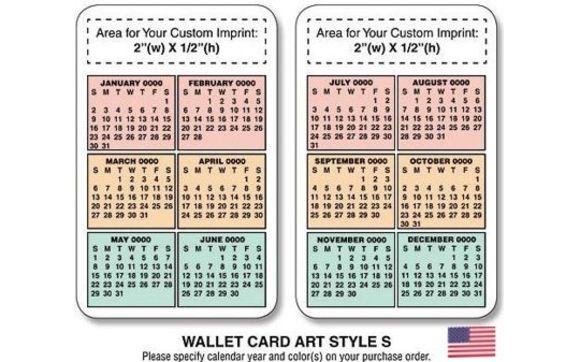 Full Color Wallet Calendar Card