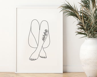 Flower Legs Art Printline Drawing Women Illustration Etsy