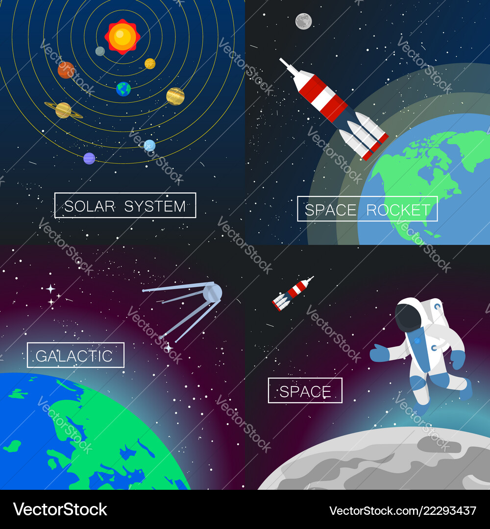 Universe Banner Set Flat Style Royalty Free Vector Image