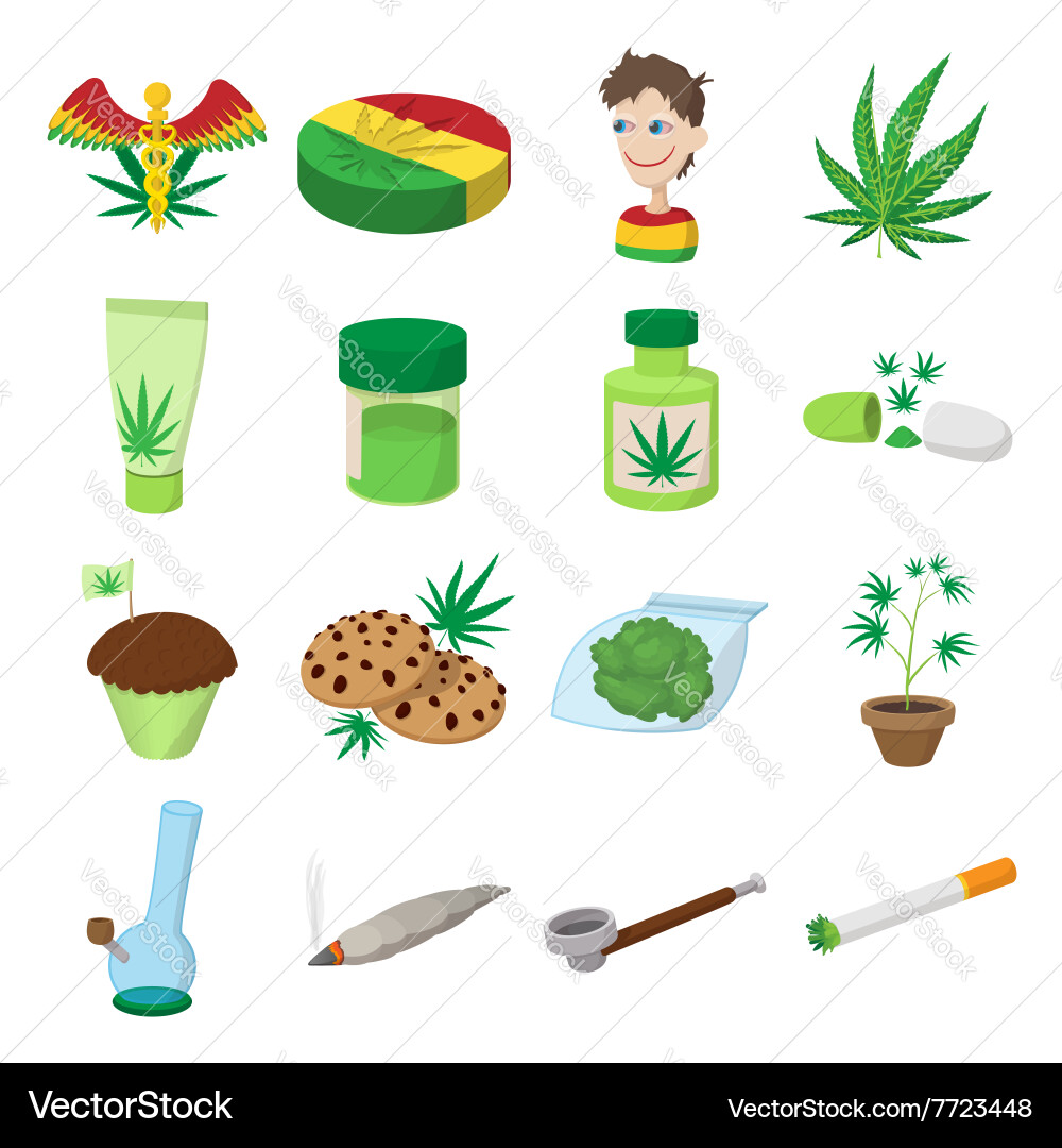 Weed Icons Set Cartoon Illustration Stock Vector Colourbox