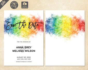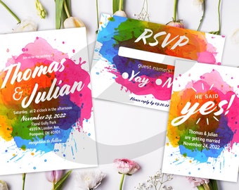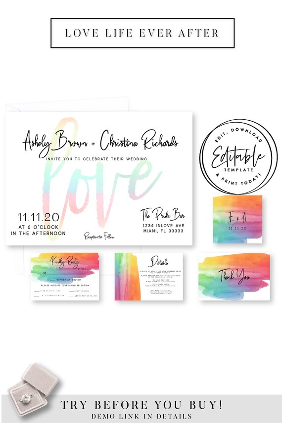 Rainbow Wedding Invitation Suite Editable Lesbian Wedding Etsy