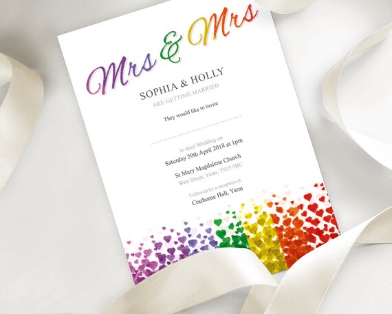 Lesbian Wedding Invitation Mrs Mrs Printable Editable Pdf Etsy