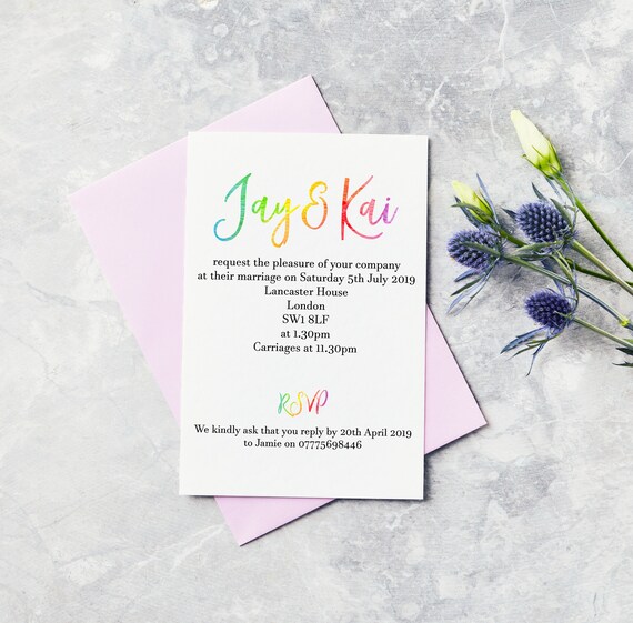 Lgbt Rainbow Wedding Invitations Wedding Invite Personalised Etsy