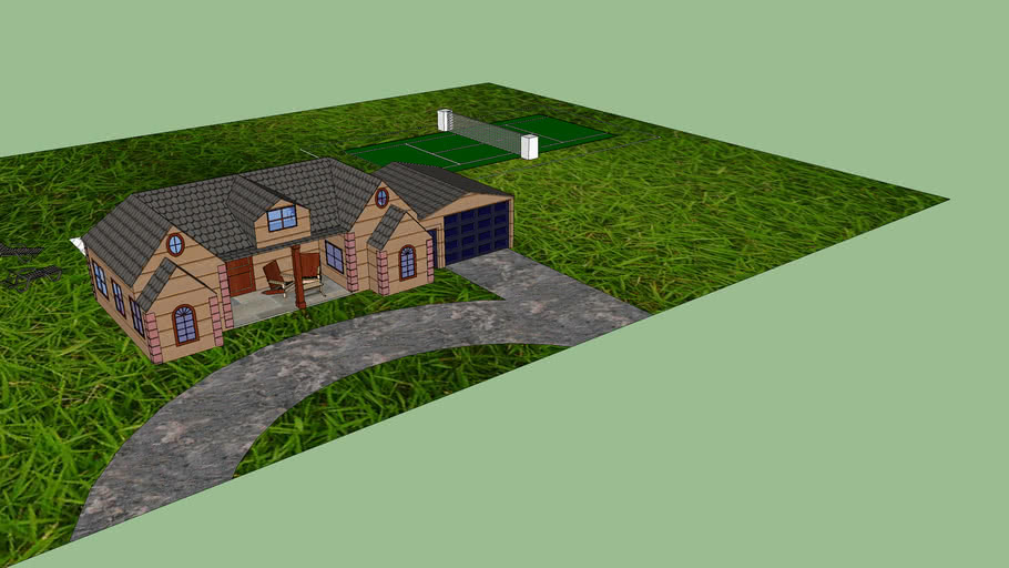 House With Tennis Court Pool And Adirondack Chairs 3d Warehouse