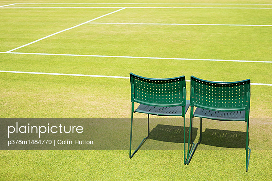 Two Chairs On Grass Tennis Court Stock Photo Edit Now