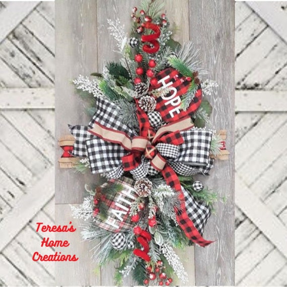 Buffalo Check Christmas Swag Christmas Door Decor Winter Etsy