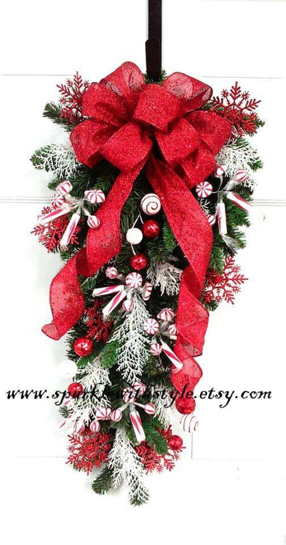 Holiday Swags Christmas Door Swag Christmas Teardrop Swag Red Christmas Swag R Christmas Wreaths Christmas Door Decorations Christmas Tree Decorating Tips